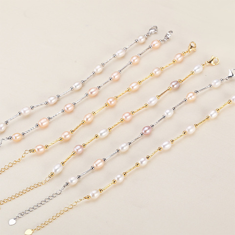 Bayanlar moda trendy el yapımı gerçek tatlı su inci boncuk dainty bilezik takı kızlar için