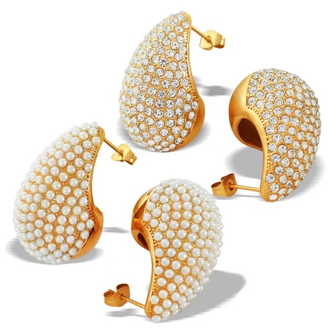 2024 moda titanyum çelik paslanmaz çelik inci küpeler Vintage paslanmaz çelik damla su damızlık küpe takı aksesuarları