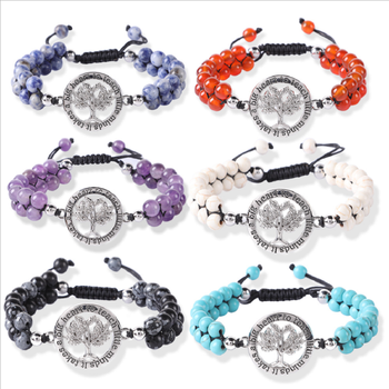 Pulsera de árbol de la vida de ágata roja para mujer, brazalete de cuentas de cristal de doble capa, joyería