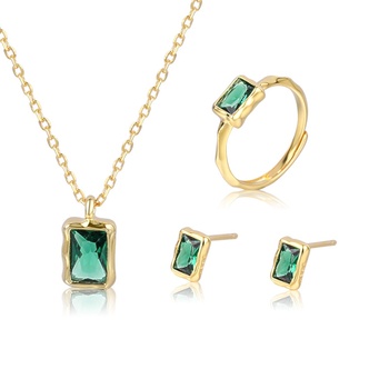 Conjunto de pendientes y anillo de Plata de Ley 925 con colgante de cristal de Esmeralda y circonita verde, conjunto de joyería