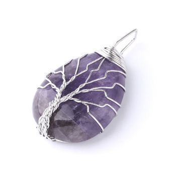 Colgante de árbol de la vida para mujer, piedras naturales, amatista, Ojo de Tigre, Cuarzo Rosa, ágata, Aventurina