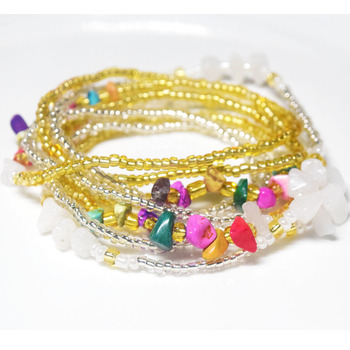 Trending-anillo africano de varios colores para mujer, cuentas de cristal doradas para la cintura, cadenas para el cuerpo, joyería de cordón de algodón, venta al por mayor