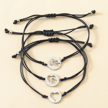 Pulsera negra hecha a mano para 3 generaciones, brazalete ajustable con tarjeta de regalo