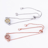 Moda Acero inoxidable Rosa flor aromaterapia aceite esencial Perfumedifusor medallón 11mm cadena pulsera joyería para mujer