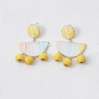 Pendientes de gota tejidos de ratán hechos a mano para mujer, accesorios, nuevo pendiente geométrico tejido de rafia, pendiente de niña bohemio hecho a mano europeo