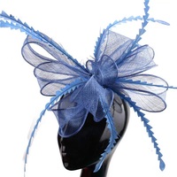 Nouveau chapeau d'église pour femmes Accessoires de mariage fait à la main Grand nœud papillon Plume Derby Ascot Fascinator Sinamay Coiffe