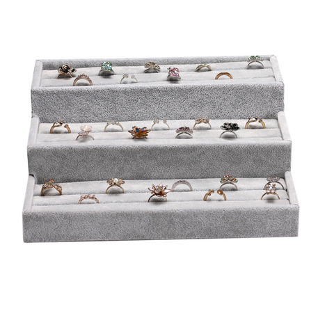 High end 34x8.5x3 impilabile velluto legno gioielli vetrina organizzatore di gioielli imballaggio vassoio di visualizzazione per anelli collana braccialetto