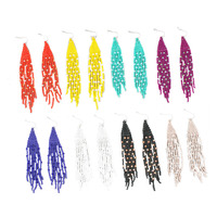 卸売夏マルチカラー自由奔放に生きる赤ガラスシードビーズタッセルフリンジイヤリングロングタッセルドロップドレスイヤリング女性用