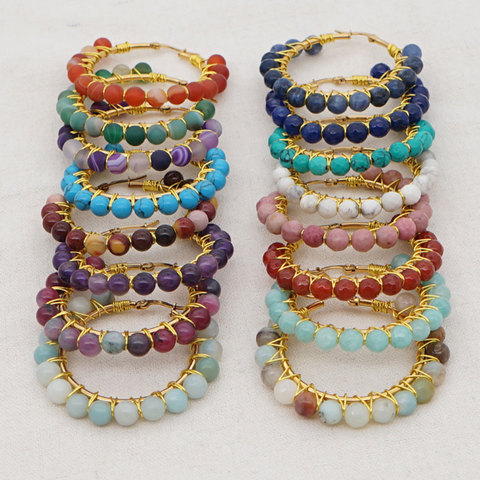 Nature del stein Perlen Perlen 5cm große Edelstahl Türkis Howlite blau Lapis Creolen Kreis Frauen Ohrring Schmuck
