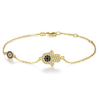 Damen Vintage Chic Small Minimal Silber Zirkonia Evil Eyes Hamsa Hand Fatima Viel Glück verstellbarer Armband schmuck